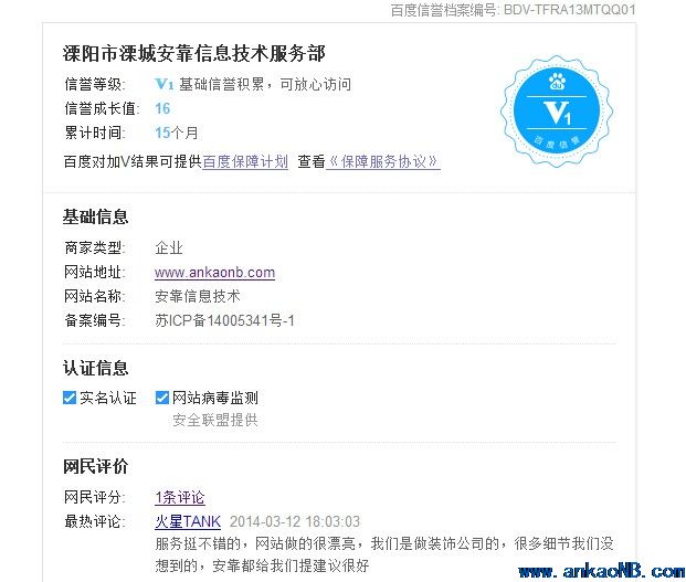 喜訊:安靠信息技術官方網(wǎng)站經(jīng)過百度加V認證