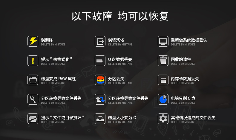 硬盤數據恢復 分區損壞 數據恢復 數據丟失 硬盤誤操作 誤刪除格式化 硬盤磁頭壞, 電機壞 數據誤刪除格式化 分區丟失 固件損壞 壞道 電路板故障等