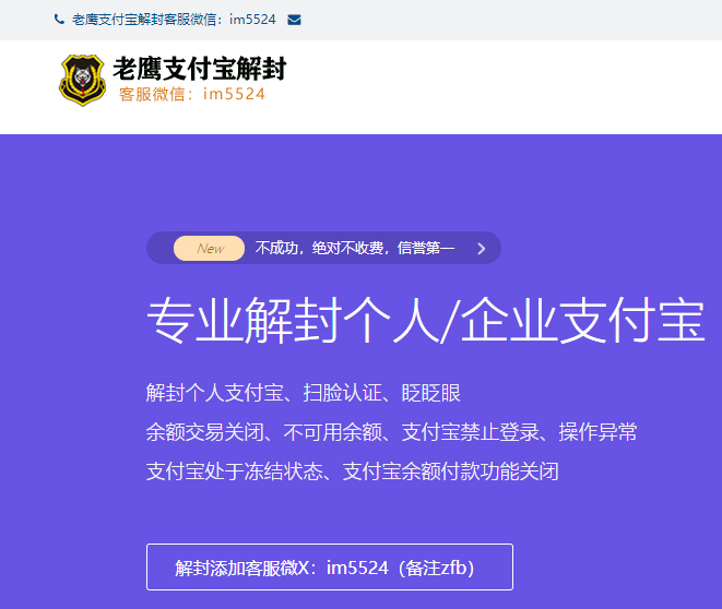 《老鷹解封》我們團隊做這行已經5年多了,各式各樣的人都遇過,各種網站 打過廣告,各種群發消息,也開過淘寶做擔保交易,可是為什么現在解號的人都不做擔保呢?有的客戶拍下后,號解開了,然后在申請退款。我的合作的伙伴都是誠信的客戶,記得有次回款回多了,客戶也是退回來,做我們這行騙子很多,據我所知道的很多所謂的解號大佬都是會黑錢的,因為我的客戶不只幾個被黑過,基本上就是能黑就黑,所以各位解號需多留個心眼。 專業解封支付寶風控,余額交易關閉,不可用余額交易,支持寶帳戶凍結。 高效率,不成功不收費,大金額驗資可以當面操作交易。