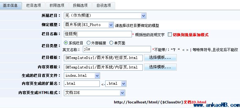 首先,先到圖片模型下建一個欄目,綁定圖片系統模型,欄目名稱自己命名,比如佳麗秀如下圖:
