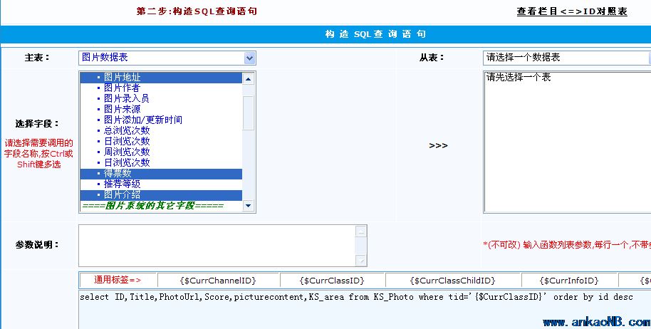 第二步:從圖片數據表中選擇要用到的字段,如下圖: