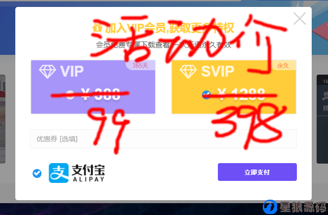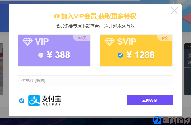開通VIP之后可以享受本站優質資源和免積分下載權限,商城的資源目前對年費會員和永久會員全面開放,可以下載星狼源碼里的所有資源。注意:年費會員只享受VIP標志的資源,部分SVIP資源不能下載。