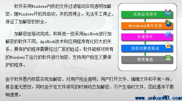 安靠加密軟件采用Windows內(nèi)核的文件過(guò)濾驅(qū)動(dòng)實(shí)現(xiàn)透明加解密。隨Windows開(kāi)機(jī)而啟動(dòng),關(guān)機(jī)而停止。無(wú)法手工停止,保證了加解密的安全。