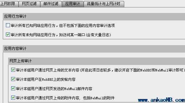 談到安全問題時,大多數人都只關注外網安全,但其實機構的信息資產更多的不是被黑客竊取,而是通過內部泄漏的。上網行為管理設備完善的訪問審計和監控功能能夠有效防止信息通過Internet泄漏,并建立強大的內部安全的威懾,減少內部泄密的行為。對于郵件類型的應用采用了深信服“郵件延遲審計”的專利技術來保證先審計后發送;對于通過Webmail站點發送郵件,全面記錄郵件正文和附件等;對于QQ、MSN等聊天內容提供了全面的記錄功能;對于BBS、論壇發帖不僅根據關鍵字進行過濾,成功發布的內容也能全面記錄;內網員工訪問的URL地址、網頁標題、甚至整個網頁內容,AC也能夠完全監控和記錄等。訪問審計/監控模塊為機構構筑了強大的內部安全屏障。針對不同的用戶、用戶組,通過數據簡單的勾選,即可完成差異化的行為審計功能