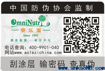 防偽碼在防偽標簽中應用普遍,是應用廣的防偽技術之一。利用防偽碼查詢產品真偽簡單易行,容易被消費者接受;另外,系統自動生成的防偽碼具有不重復性和不連續性,一經查詢就不再有效,所以數碼防偽標簽防偽性能高,能夠有效保護產品品牌,防止假冒偽劣。